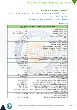 Ctrl + C (or Ctrl + Insert) Copy the selected item.