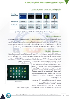 شكل رقم ( )5أنظمة التشغيل الاكثر استخداما والشركات المطورة والاجهزة المتوافقة معها