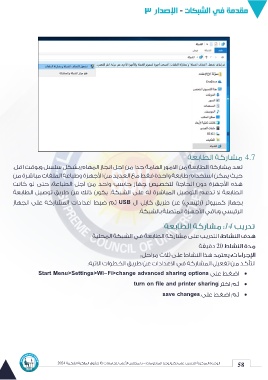 4.7 USB 14 20 Start Menu>Settings>Wi-Fi>change advanced sharing options • turn on file and printer sharing • save changes • 2024 © 58