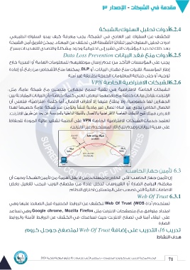 Data Loss Prevention 6.2.4 6.2.5 DLP 6.2.6 VPN تتيح الشبكات الخاصة الافتراضية بالاتصال بالشبكة الداخلية بالمؤسسة عن بعد عن طريق VPN 6.3 Web Of Trust 6.3.1 Web Of Trust (WOS Google chrome, Mozilla Firefox Web Of Trust 16 2024 © 71