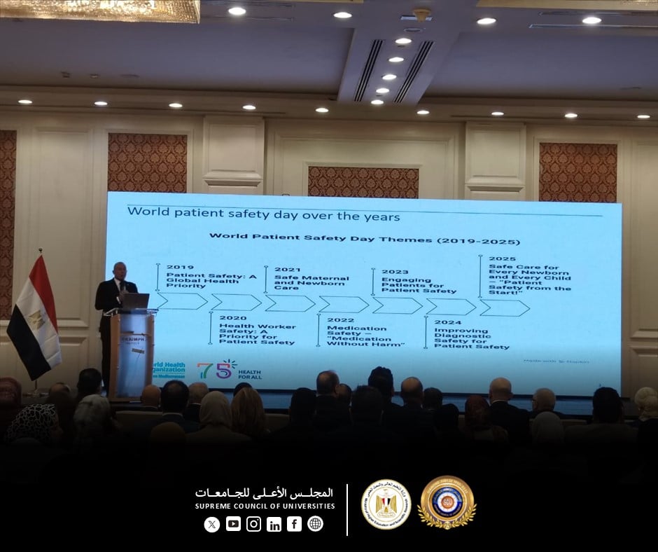 بحضور الدكتور خالد عبد الغفار، نائب رئيس مجلس الوزراء للتنمية البشرية ووزير الصحة والسكان، شارك الدكتور مصطفى رفعت، أمين المجلس الأعلى للجامعات، في الاحتفالية الكبرى التي نظمتها الهيئة العامة للاعتماد والرقابة الصحية بالتعاون مع مكتب منظمة الصحة العالمية (WHO) في مصر، بمناسبة "اليوم العالمي لسلامة المريض"، تحت شعار: "اليوم العالمي لسلامة المريض".