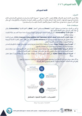 ساسملاو ةيموكحلا تائيهلا تاسسؤملا ىدحإب اهراضإ لمتحي ةثداح ةعقاو يأ لإ ر بشي :) Cyber Threat ( نا ر بيسلا ديدهتلا ✓